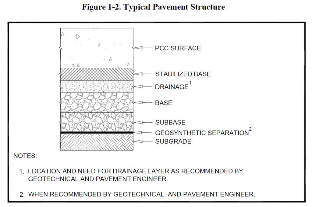 Regardless of the pavement type selected, the typical pavement section, or the layers, consist of: