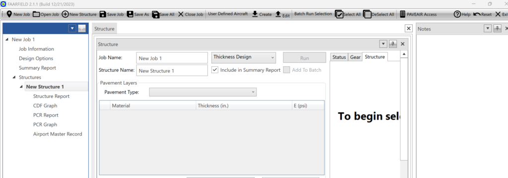 For our discussion, we’ll use FAA’s advisory circular 150/5320-6G, “Airport Pavement Design and Evaluation”. In addition to this guidance document, the FAA also provides a computer program called FAARField that helps pavement designers experiment with layer types and thicknesses fairly quickly to select the best pavement structure for the situation. The FAA also provides a whole training video series on how to use FAARField.